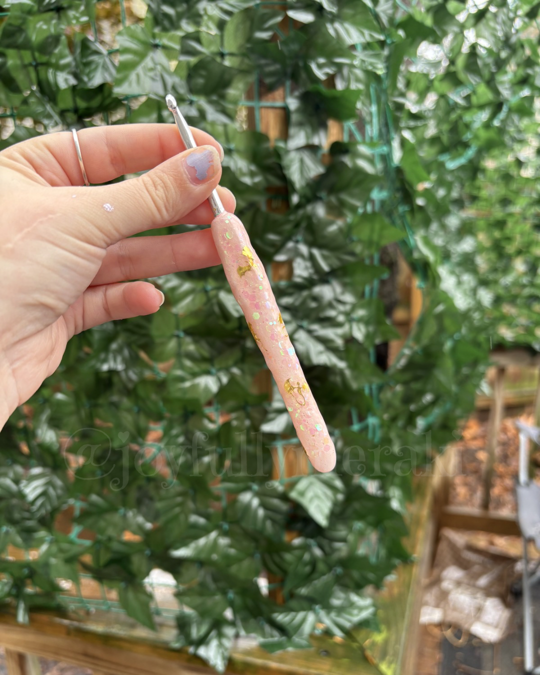 This custom crochet hook is individually hand painted and professionally sealed in a smooth, crystal-clear resin finish for lasting durability and shine. Each piece is carefully crafted in small batches, making every hook truly one of a kind.
