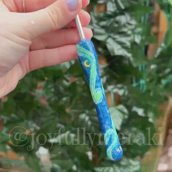 The resin coating protects the artwork while creating a sleek, easy-to-hold surface that feels beautiful in your hand. Whether you're working on plushies, wearables, or gifts, this hook adds personality and inspiration to every project.