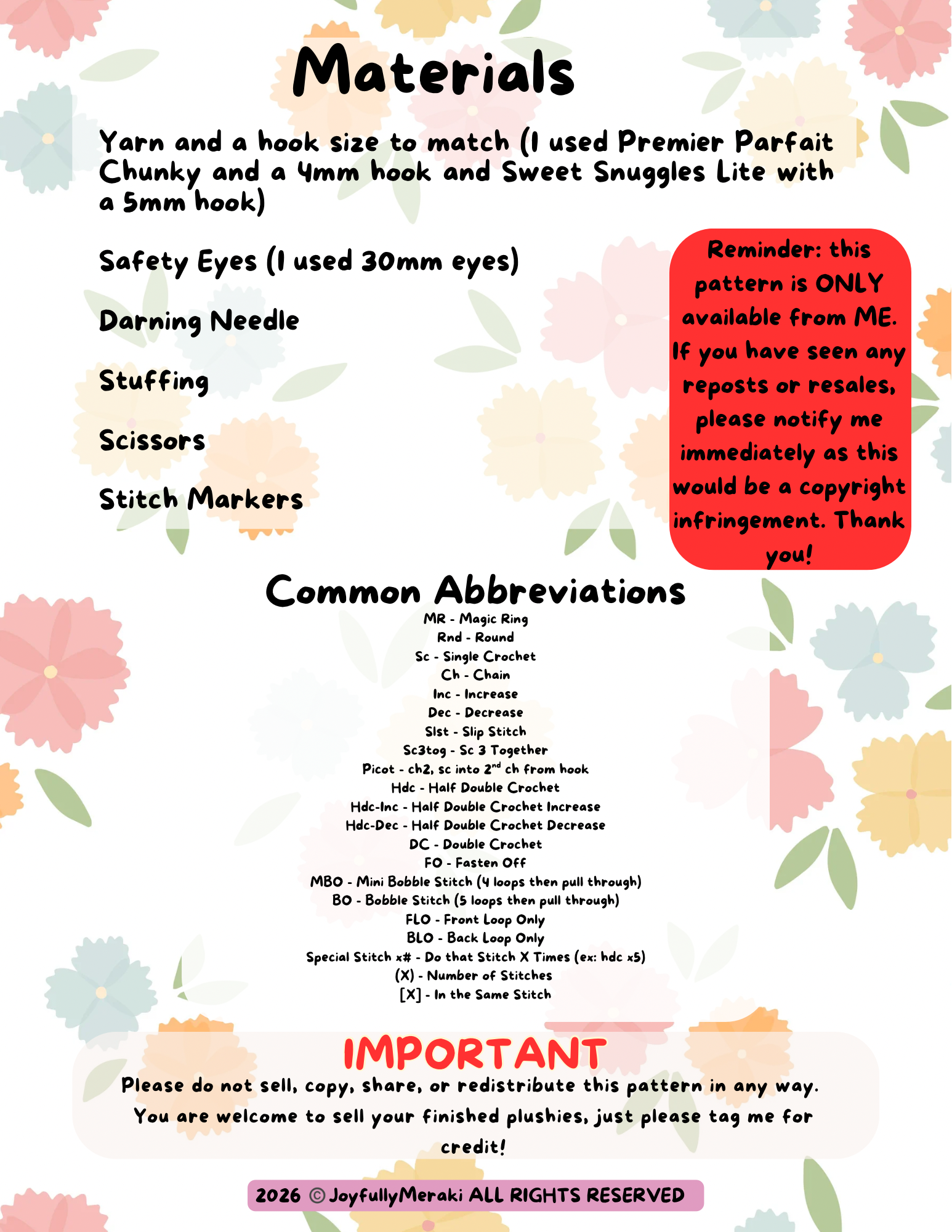 This pattern is for your personal and commercial use only. Meaning, you are welcome to sell what you create from this pattern as long as credit is given to Joyfully Meraki, or @joyfullymeraki.